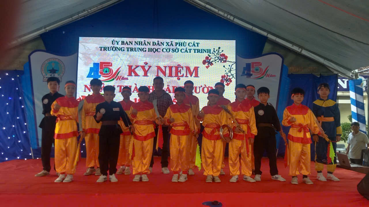 Ông cùng các học trò CLB Võ cổ truyền trường THCS Cát Trinh biểu diễn tại lễ kỷ niệm 45 năm thành lập trường